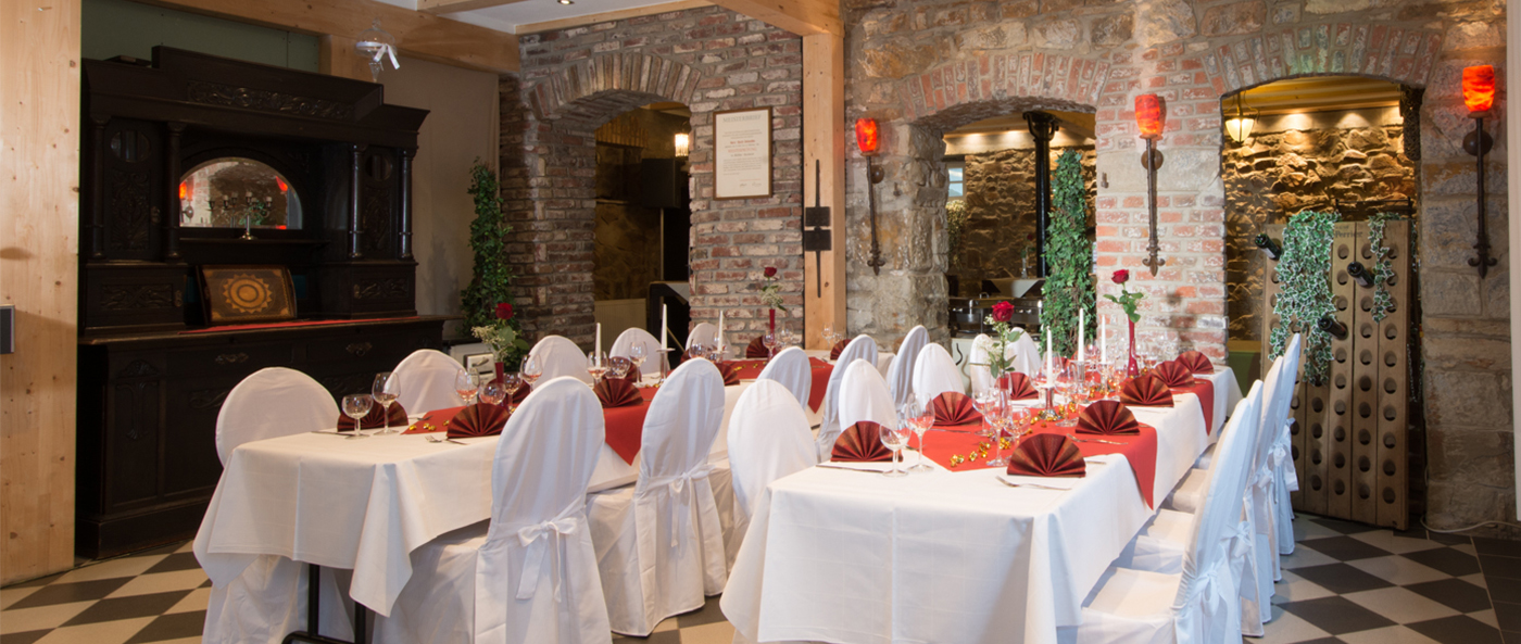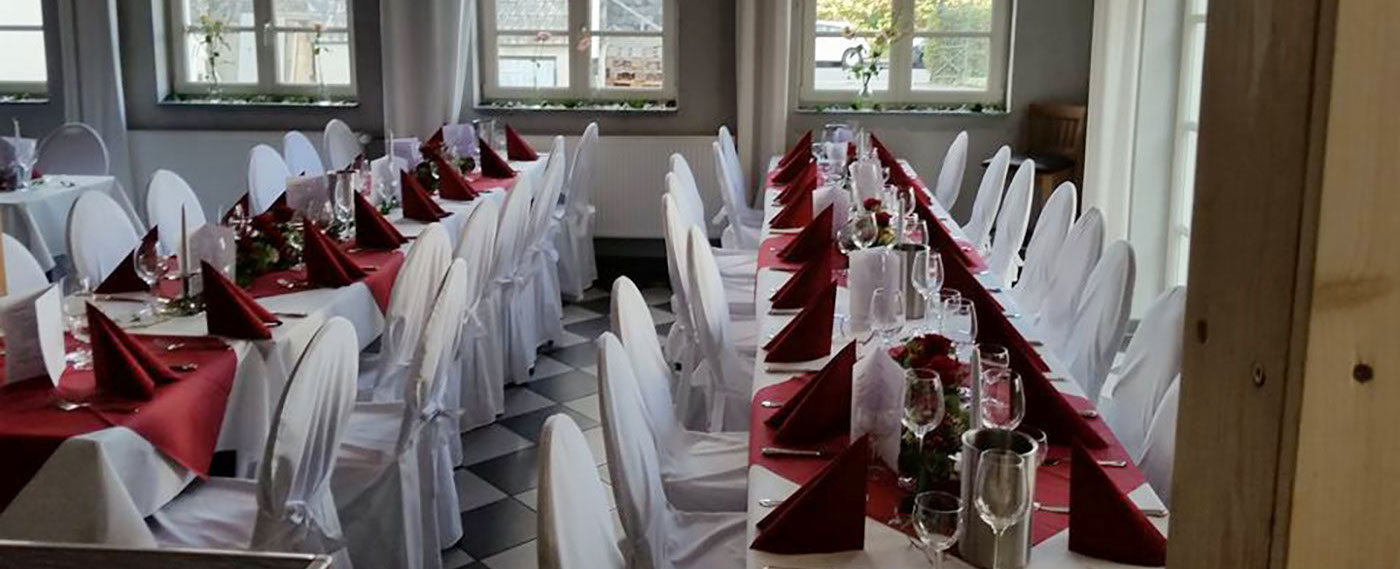 Das am Cronenberger Festsaal angeschlossene Steinhaus verfügt über einen ganz eigenen Charme und eignet sich hervorragend für Veranstaltungen, Feste und Feiern für bis zu 52 Personen (Abendveranstaltung mit Bühne) oder bis zu 80 Personen (ohne Bühne). Genießen Sie das tolle Ambiente, die schön eingedeckten Tische, das gute Essen vom Partyservice Schmidtke und freuen Sie sich auf ihre begeisterten Gäste.